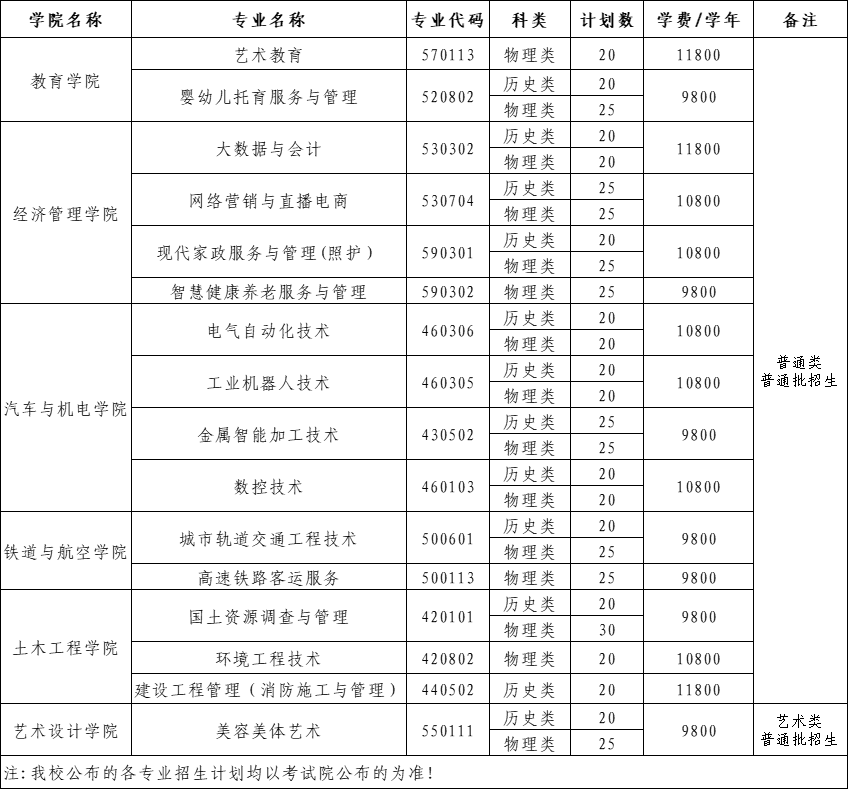 我校2025年廣東普通高考各專業(yè)招生計(jì)劃
